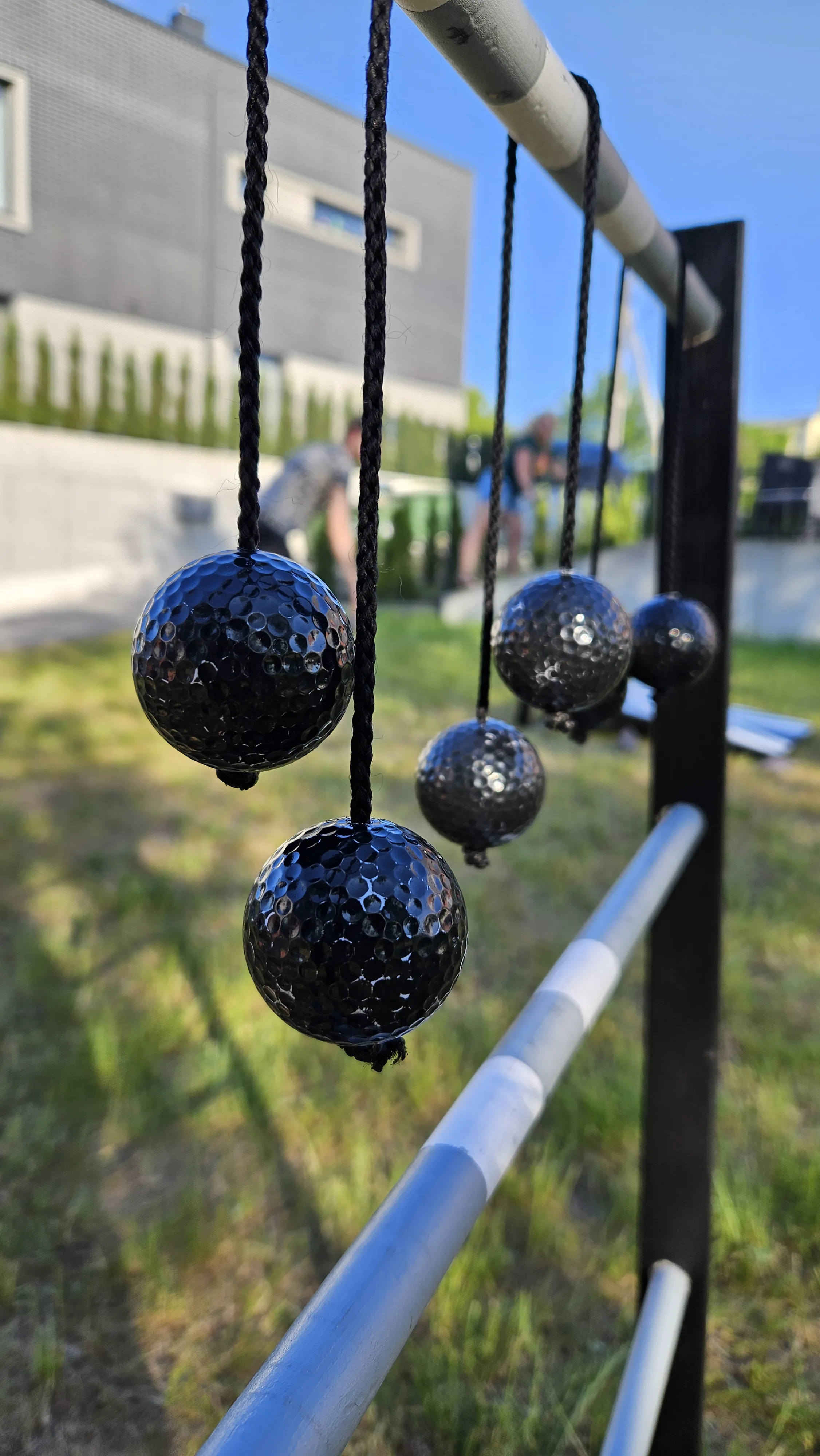Reikalingos priemonės: 2 kopėtėlės ir 6 kamuoliukų švytuoklės.