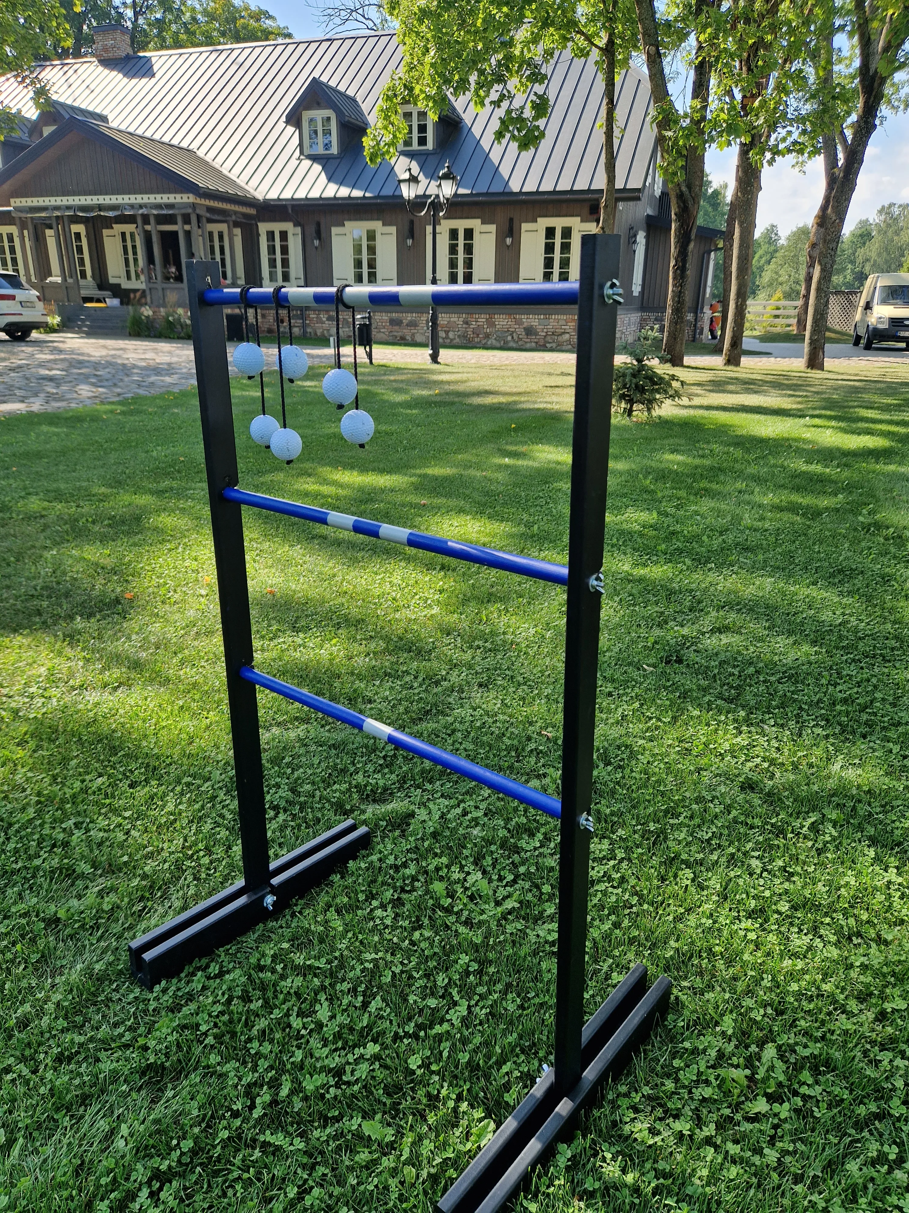 Žaidimą sudaro: 2 golfo kopėtėlės, 6 golfo kamuoliukų švytuoklės, 1 instrukcija, 1 transportavimo krepšys.