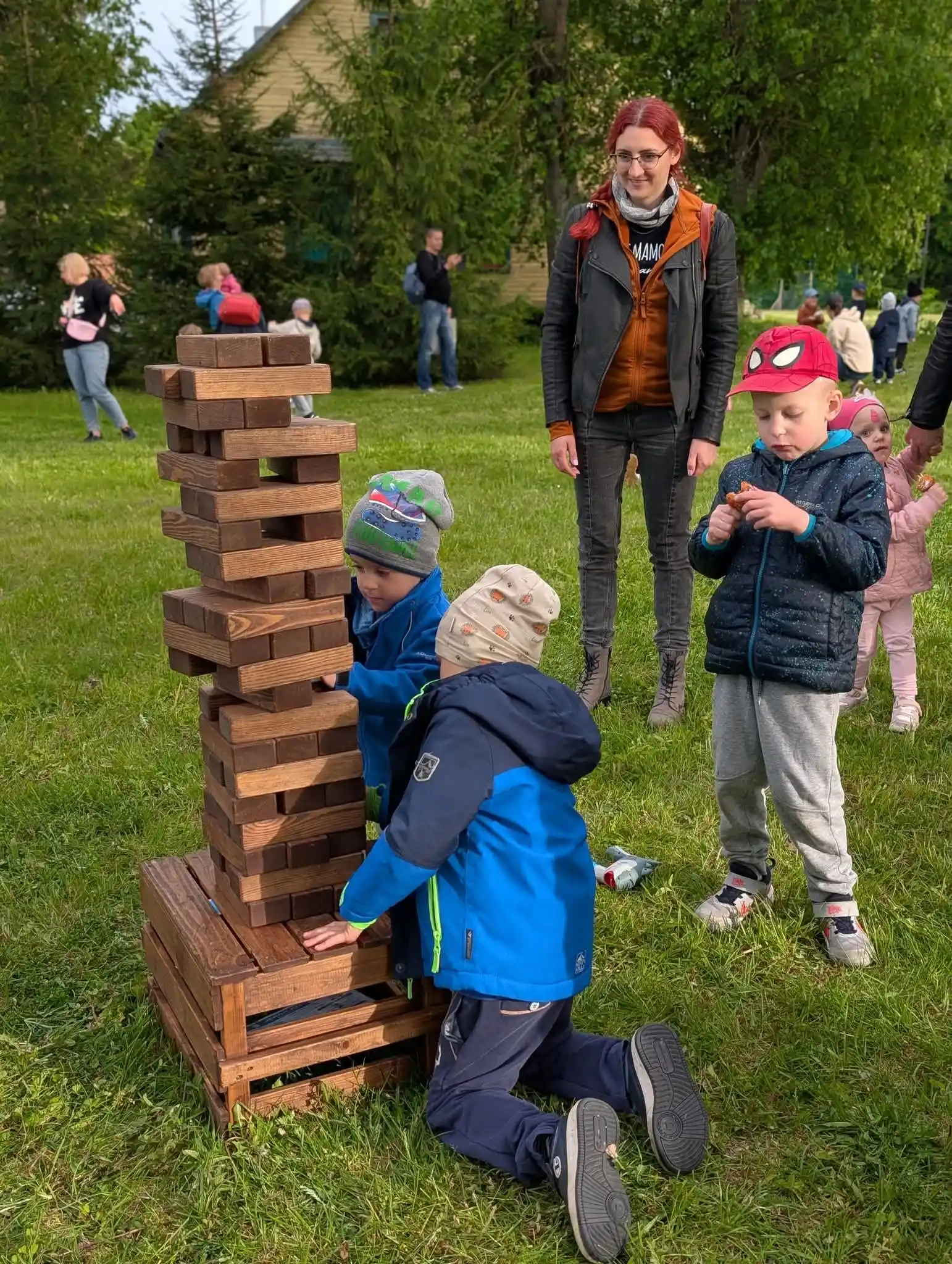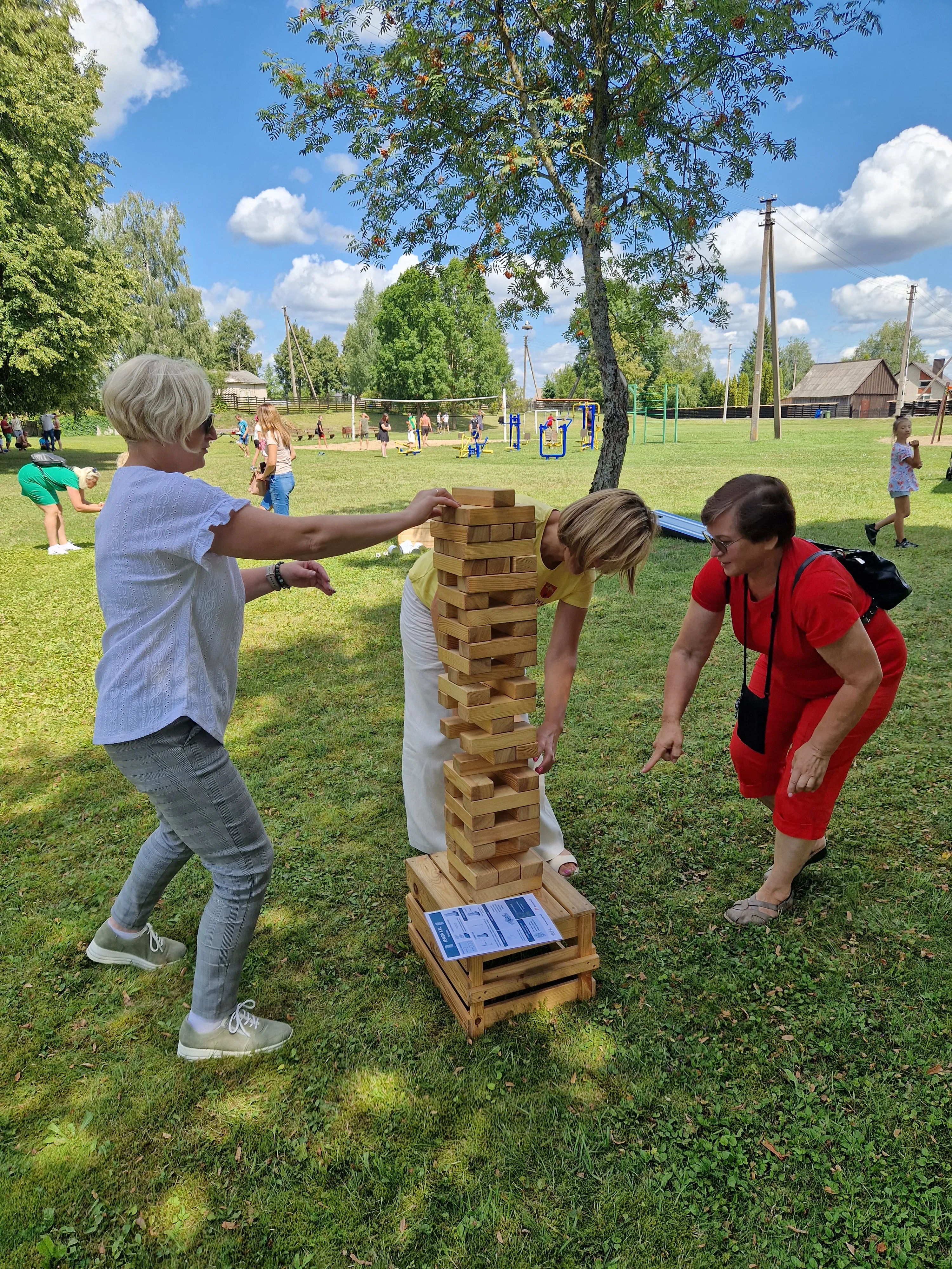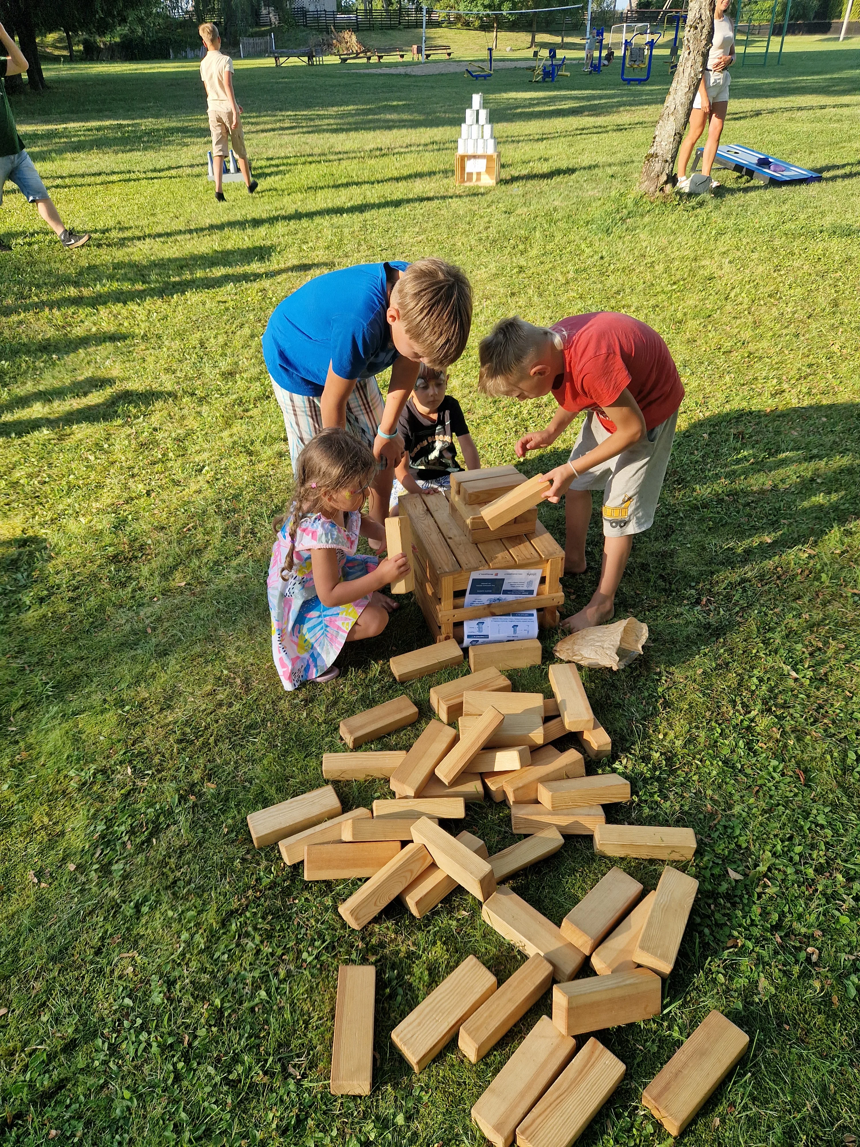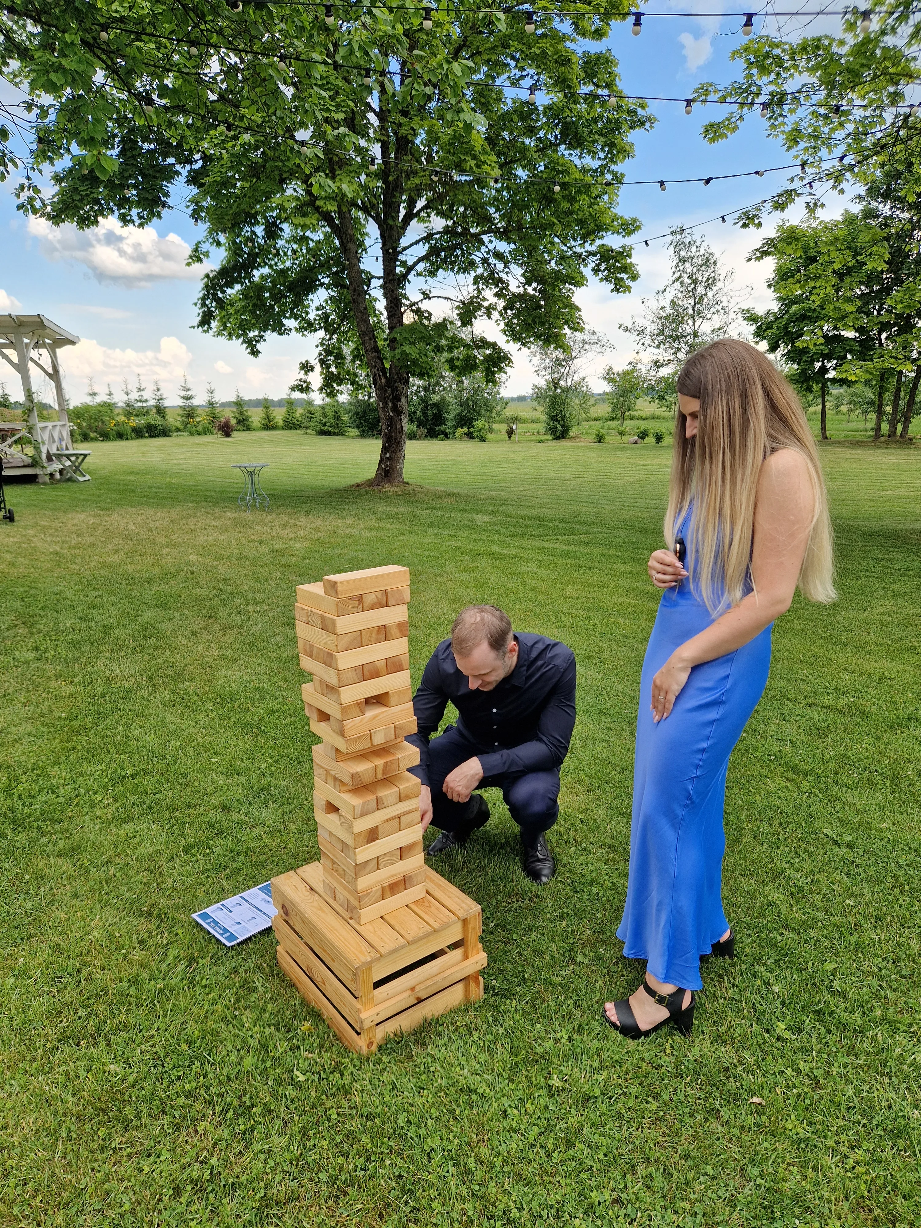 Pasiruošimas: Kaladėles sudėkite į bokštą. Tris kaladėles dėkite viena kryptimi, o kitas tris ant viršaus kita kryptimi. Žaidimą rekomenduojama žaisti ant žolės, nes krisdamos kaladėlės ant kieto paviršiaus gali susigadinti.