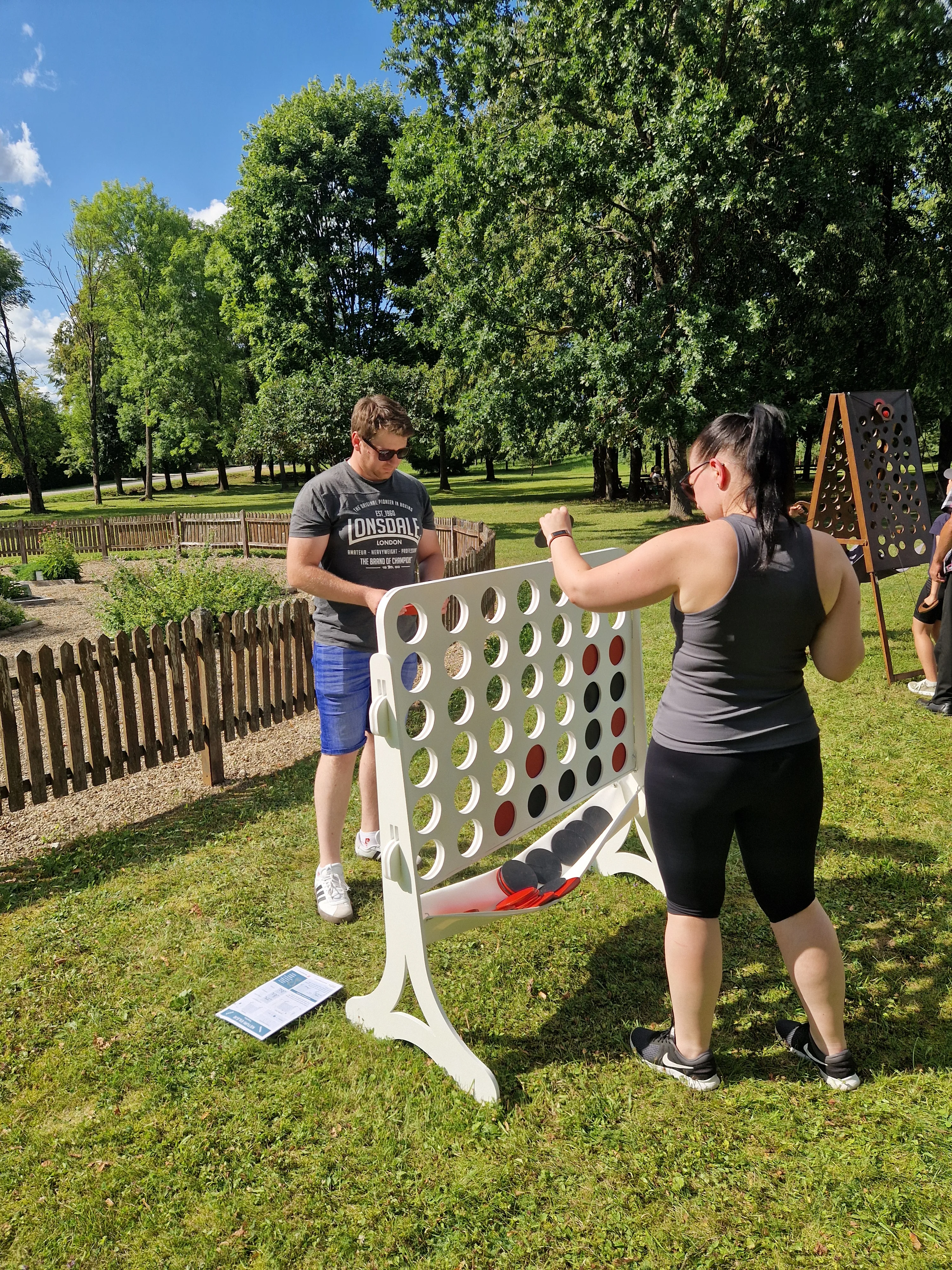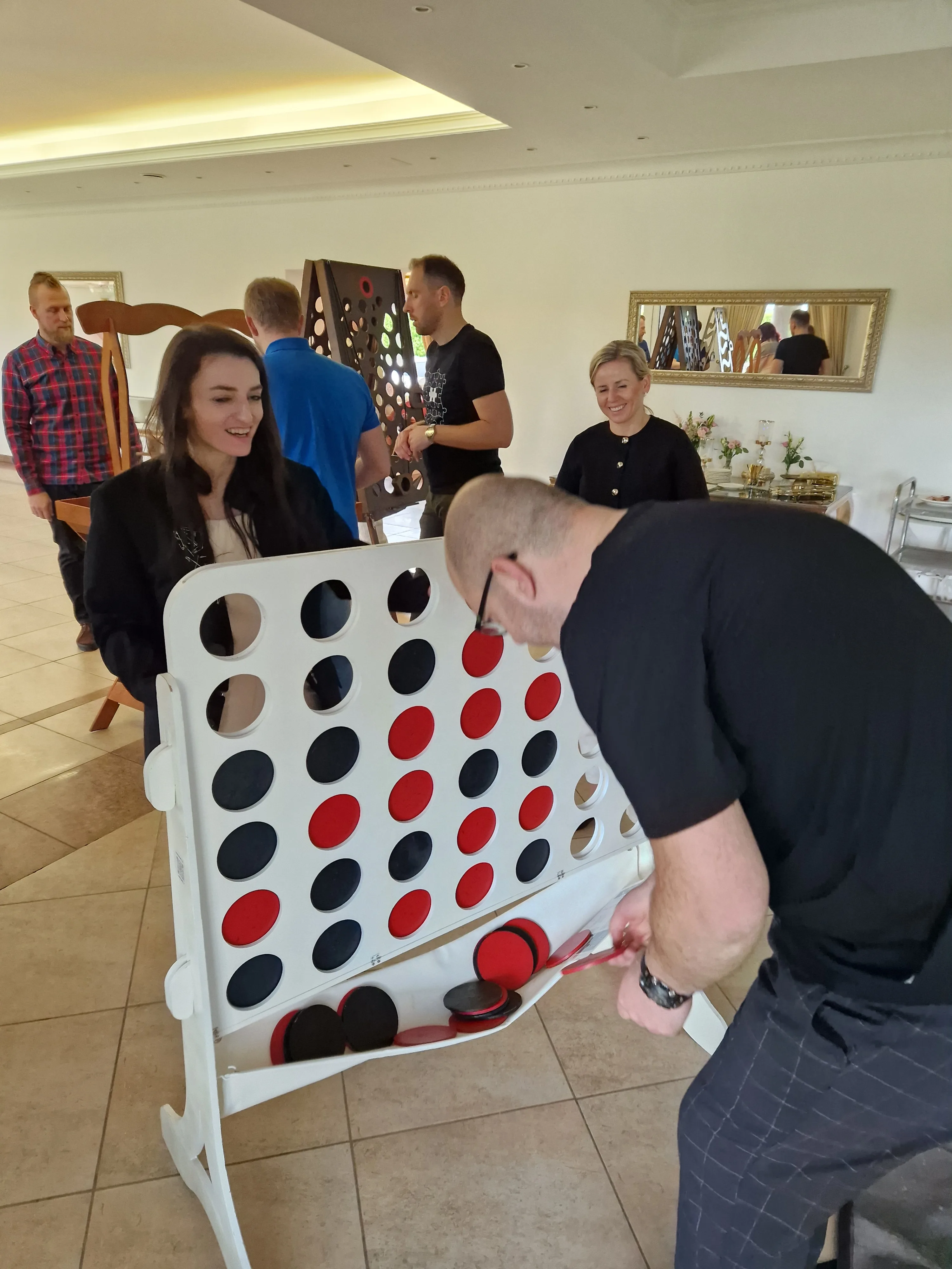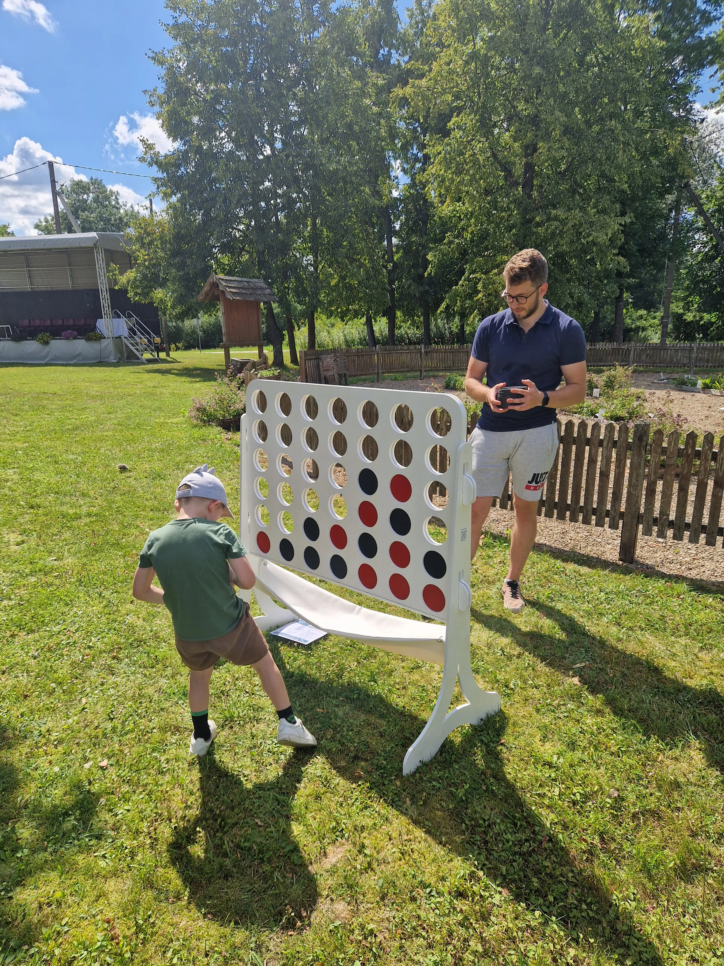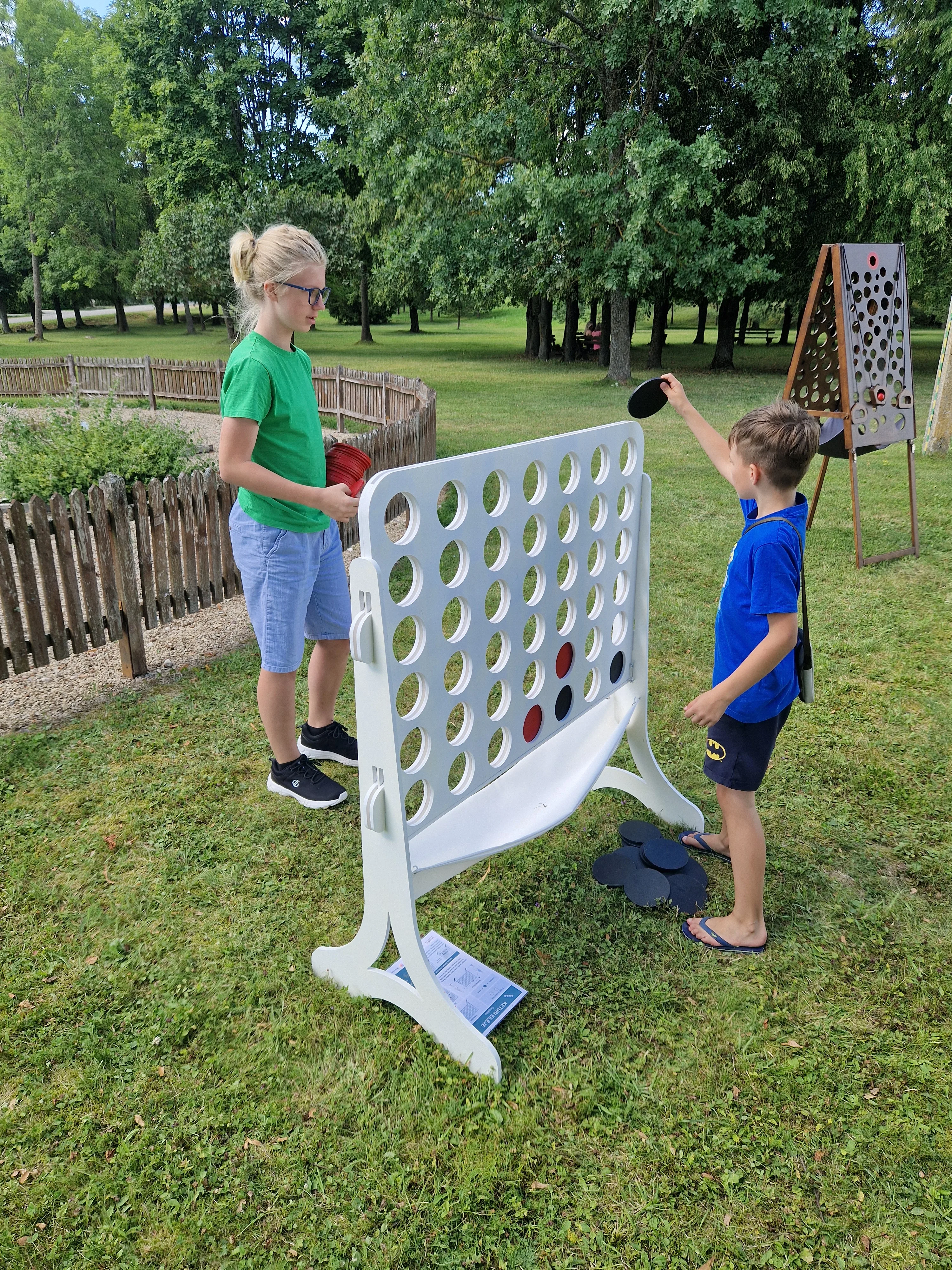 Reikalingos priemonės: Žaidimo stovas ir 21 juodas bei 21 raudonas diskas