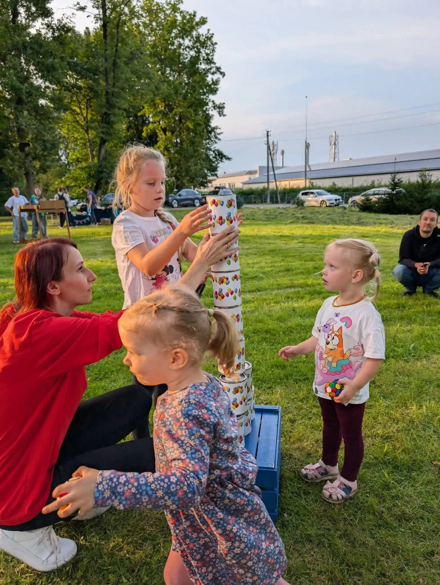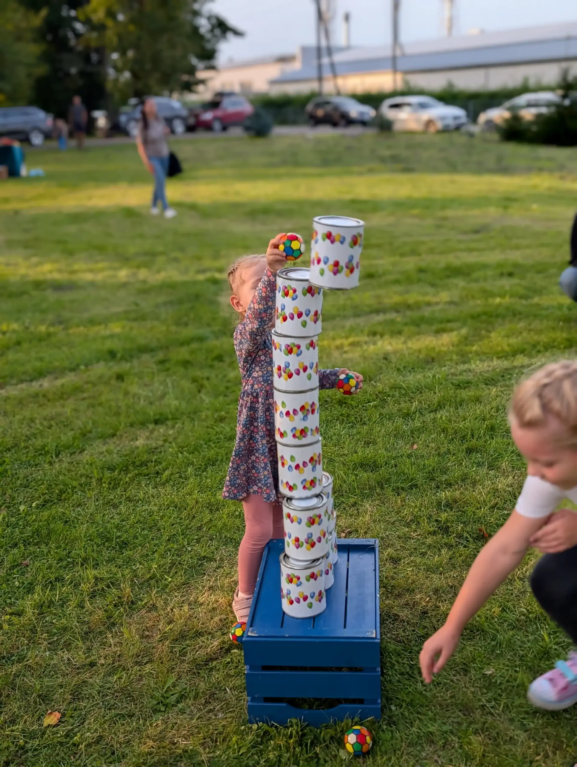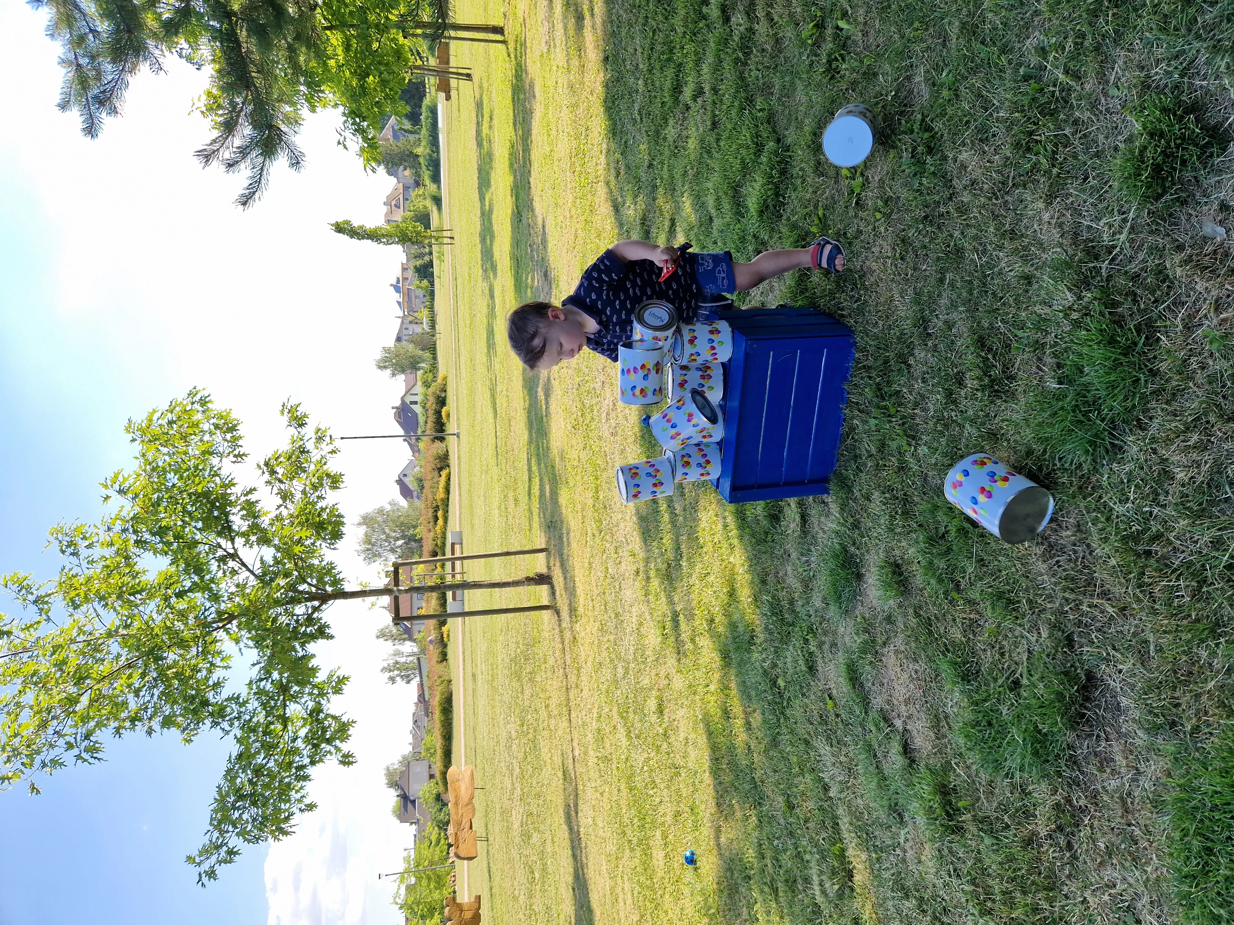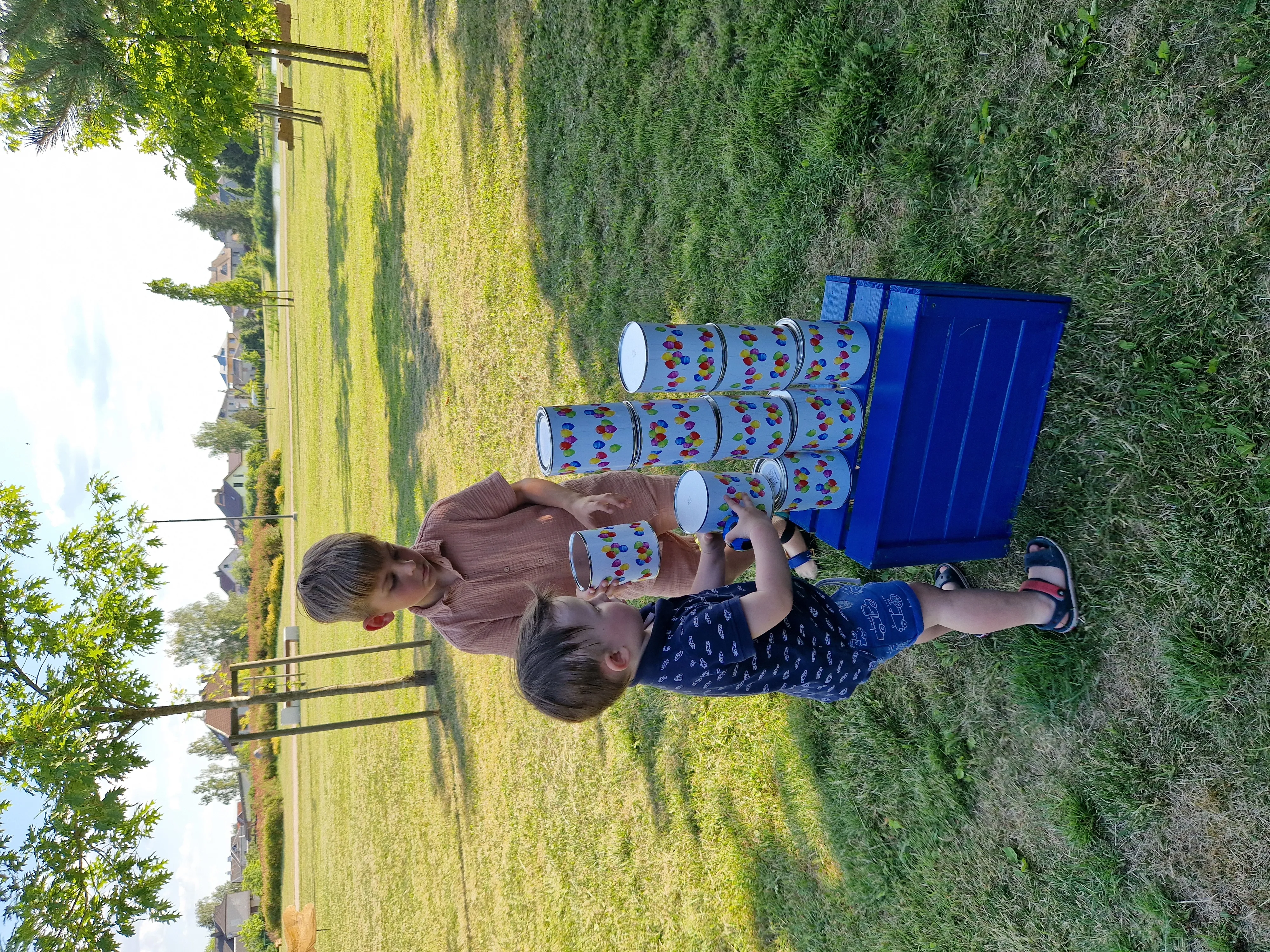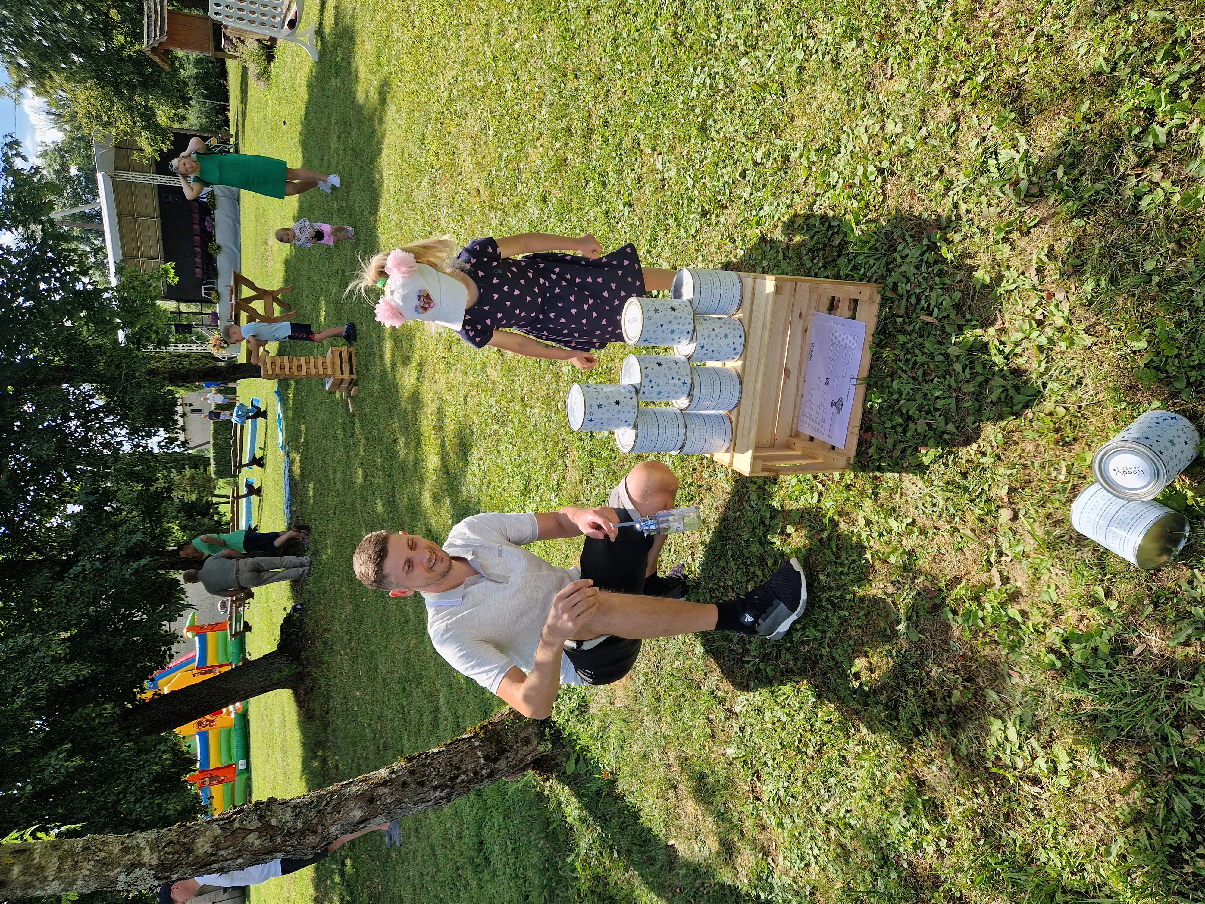 Žaidimo eiga: Kiekvienas žaidėjas turi 5 bandymus. Stengiasi numušti kuo daugiau skardinių.